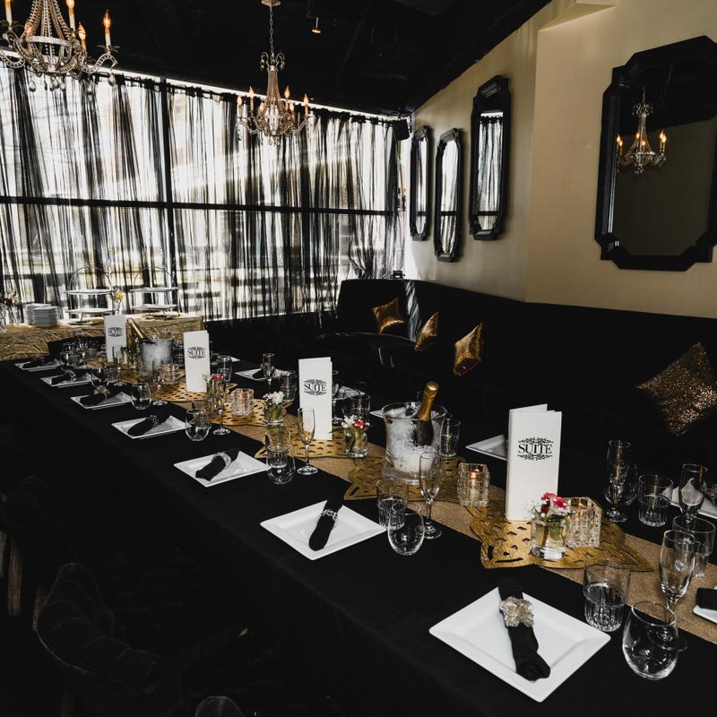 Whatever your occasion or event, Suite is the perfect location and space. With a versatile layout that is able to accommodate events for 10-500, our knowledgeable team is happy to help coordinate all your needs and create a custom experience for you and your guests. Let us help you with: Custom Menus or Catering, Live Entertainment, AV Needs, Special Decorations and more...