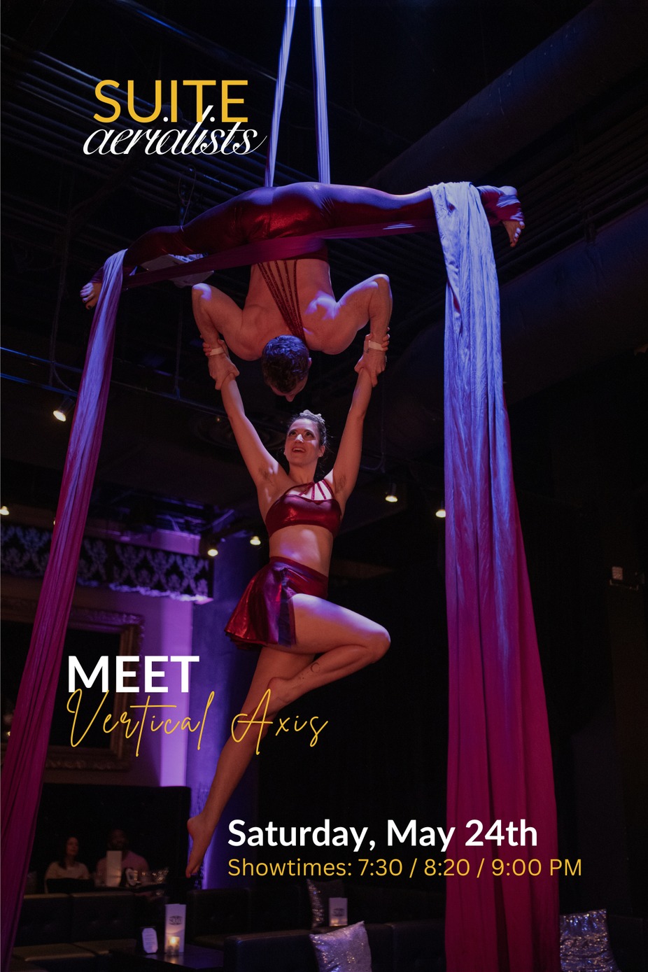 Join us for dinner & drinks and behold this weekend's aerial performances by the amazing Vertical Axis, performances starting at: